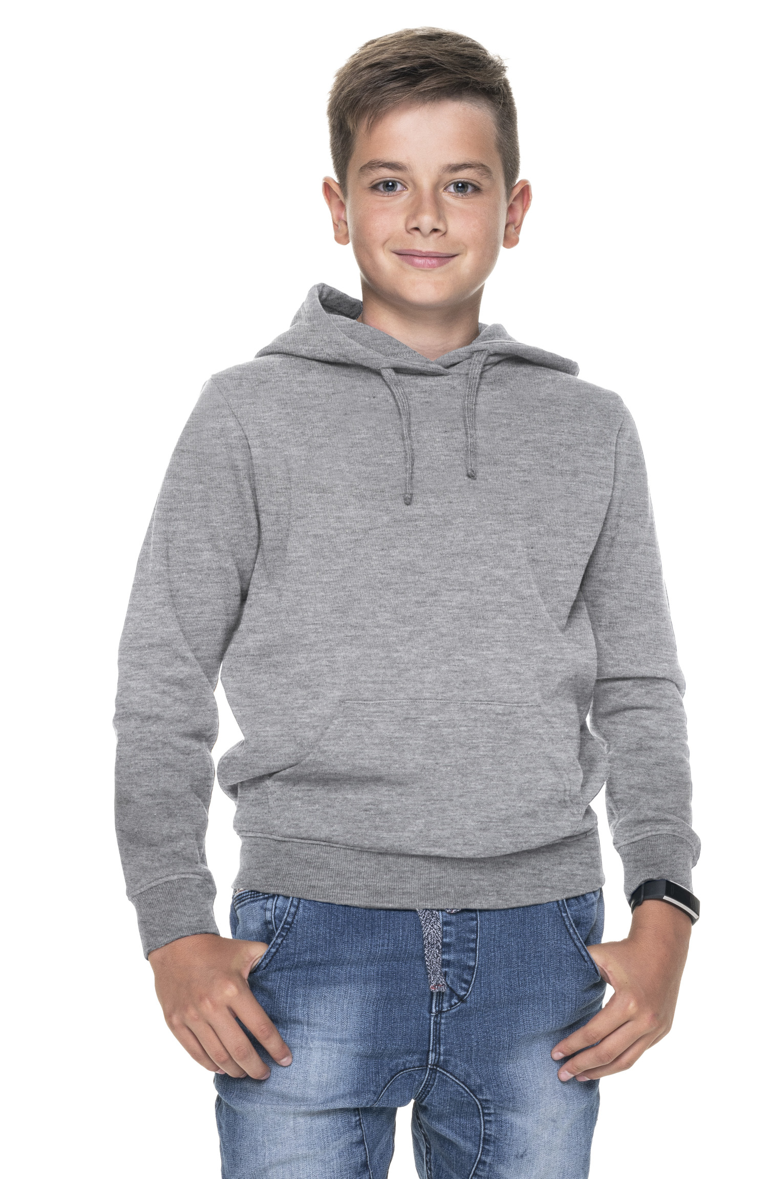 Dziecięca bluza z kapturem; dzianina szczotkowana od wewnątrz; kieszeń typu "kangurek"; dwuwarstwowy kaptur z regulacją na sznurek; elastyczne ściągacze; podwójne szwy; taśma wzmacniająca na karku i ramionach