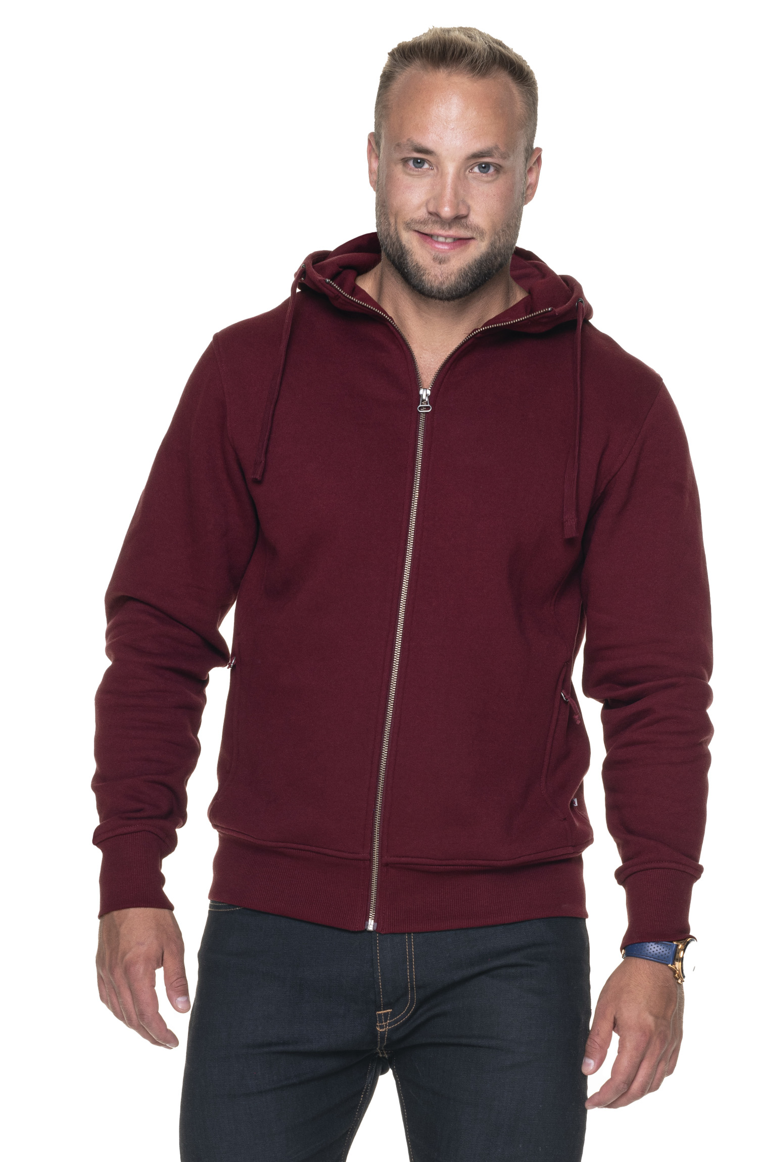 Bluza męska z kapturem wykonana z miękkiej dzianiny; gruby materiał od wewnątrz szczotkowany; kaptur wyścielony materiałem single jersey; regulacja kaptura na sznurek; zamek główny metalowy YKK; dwie, przednie kieszenie zamykane na zamek nylonowy YKK; rękawy oraz dół bluzy wykończone dwuwarstwowym ściągaczem z elastanem rib 2x2, zapewniającym dłuższą trwałość; szyja i ramiona z taśmą wzmacniającą i stabilizującą, która pozytywnie wpływa na trwałość szwów; podwójne, gęste szwy do których wykorzystano nici najwyższej jakości
