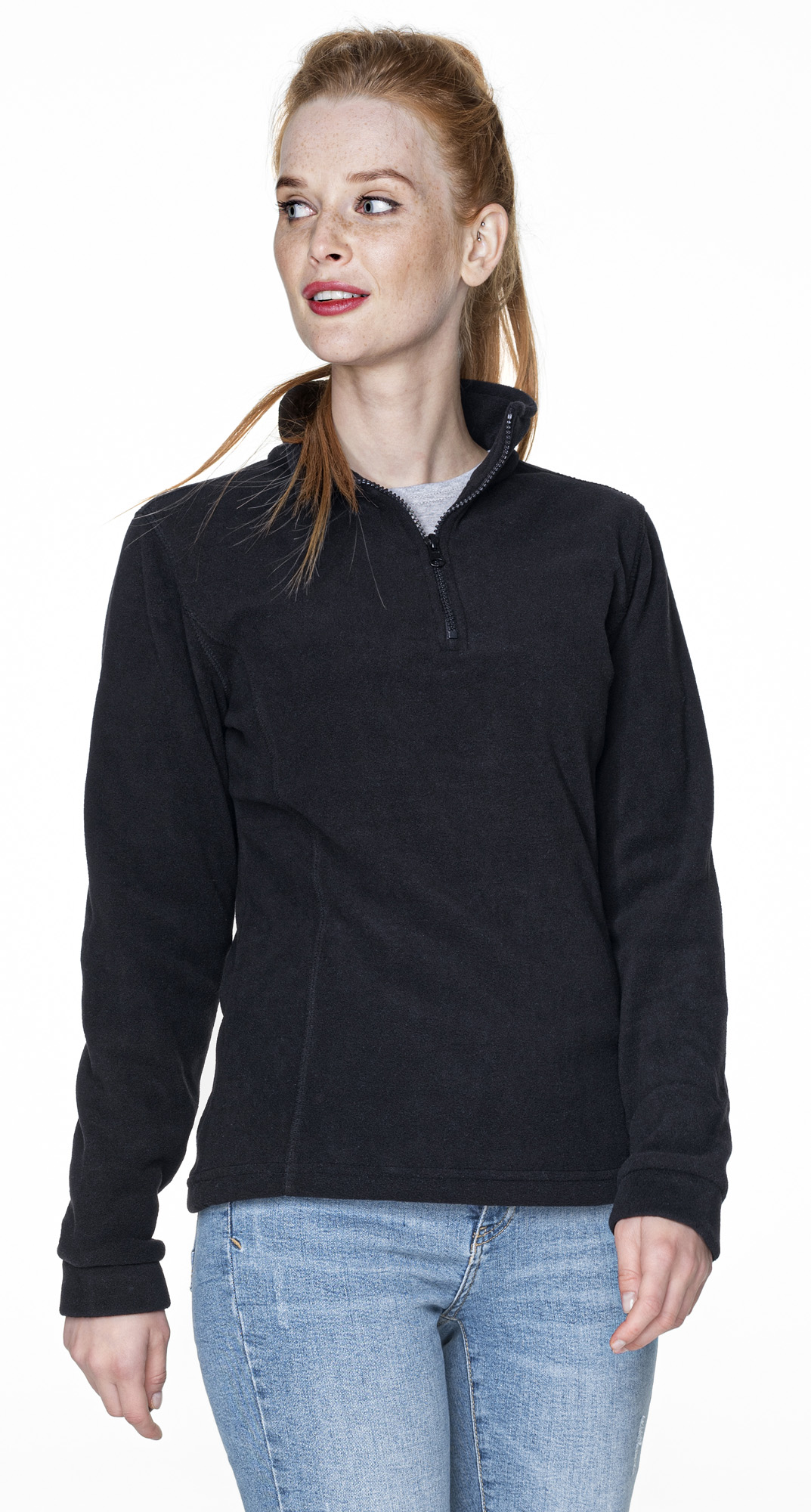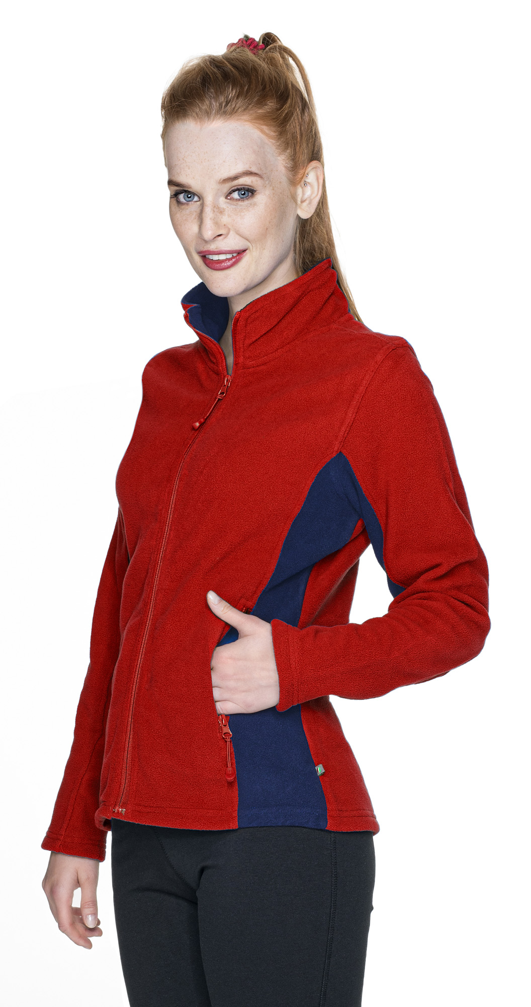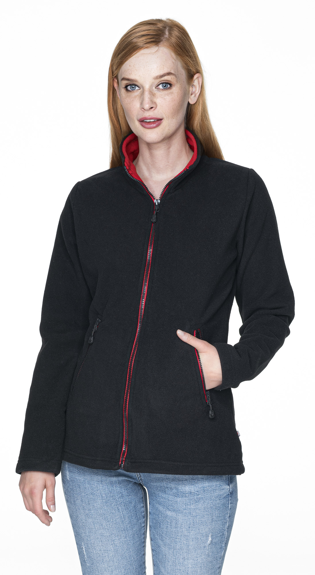 z przodu i z tyłu, wstawka tkaniny w kolorze czarnym umożliwiająca wykonanie nadruku, wzmocnienie łokci, zamek główny i kieszeni kostkowy, plastikowy; elastyczna taśma wszyta w dole oraz w mankietach; wykończenie antypillingowe materiału zapobiegające mechaceniu się; wykończenie water-repellent zapobiegające osiadaniu wody
